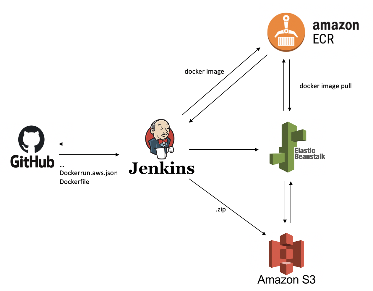 ├ .docker ┬ ├ nginx ├ Dockerfile ├ Dockerfile.nginx ├ generate-dockerrun.sh ├ generate-version.sh ├ Jenkinsfile ├ app.js젠킨스 서버와는 달리 AWS 와의 통신을 위한 파일들이 존재하게 된다.